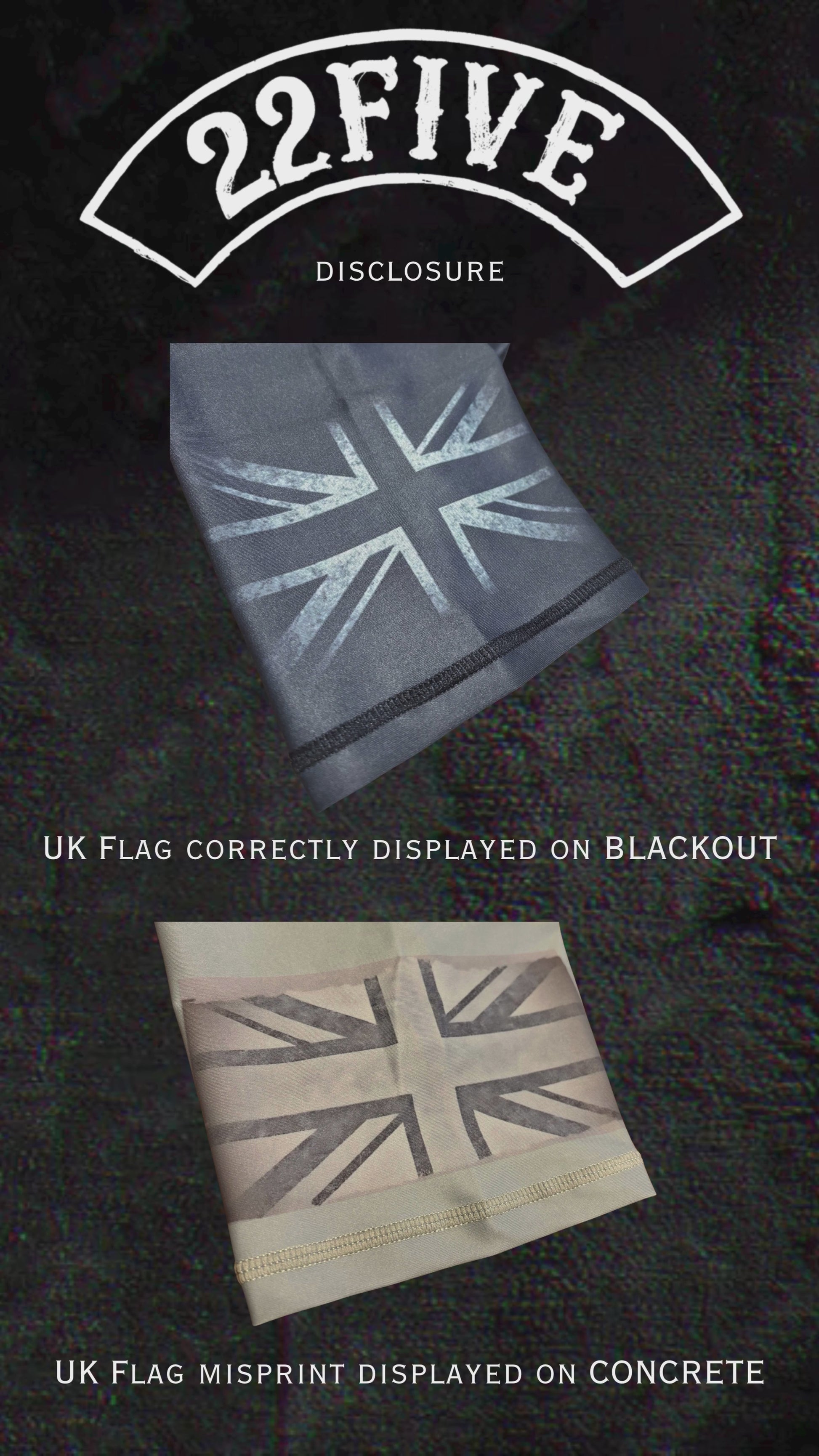 This run came back with a sublimation fault & incorrect pantone (Colour) — The UK Flags border was overprinted and missed by the Factory prior to shipping & our standard Concrete colour which is a light grey, has been wrongly produced in a Blue-Grey.